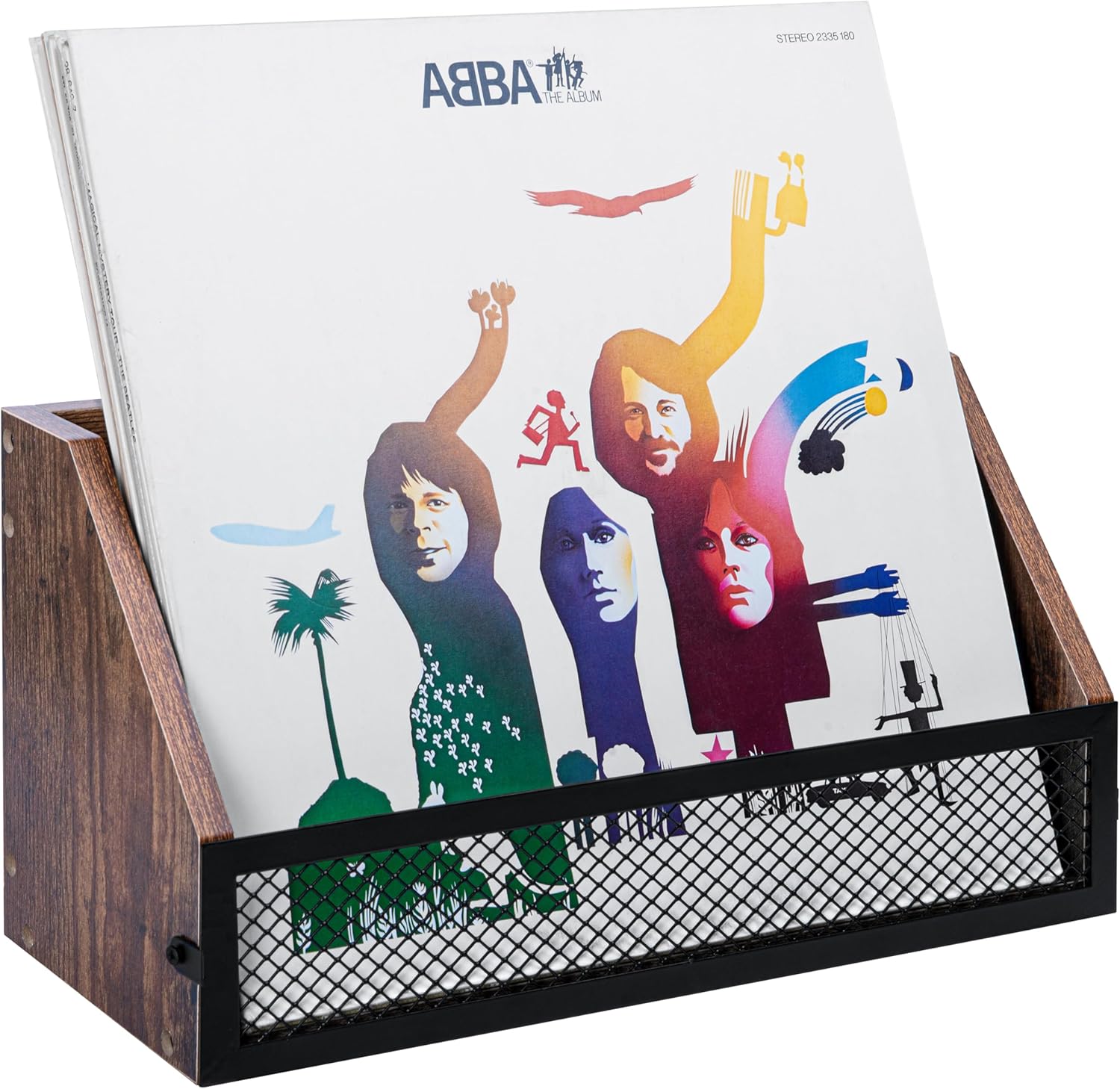 Expositor de Almacenamiento de Discos de Vinilo, Estante de Montaje en Pared, para 25-30 LPs de 12 pulgadas, Soporte de Estilo Vintage para Álbumes, Revistas o Libros, Soporte de Discos de Vinilo en Marcha