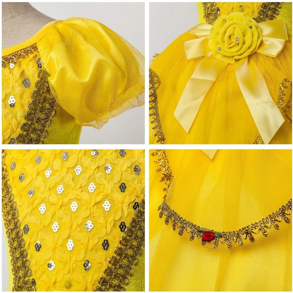FMYFWY Niñas Belle Vestido de Princesa Disfraz de Belle para Fiestas Fancy Halloween Navidad Boda Cumpleaños (Accesorios)