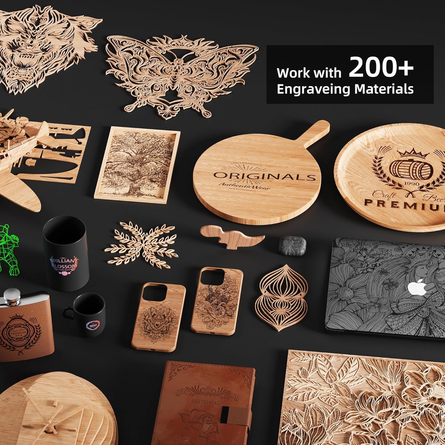 【Potencia láser de 20,000mW】La grabadora láser LONGER RAY5 20W es tan potente como una máquina CNC industrial, capaz de cortar materiales como madera de pino de 0.59", acrílico de 0.31" e incluso acero inoxidable de 0.002" con su potencia láser de 20W. Su tecnología láser de diodos ofrece una robusta salida de 20W, permitiendo un grabado ultra-preciso a 0.08×0.1 mm. Con una generosa área de grabado de 14.75×14.75 pulgadas, es perfecta para acrílico, metal, madera, acero inoxidable y más.