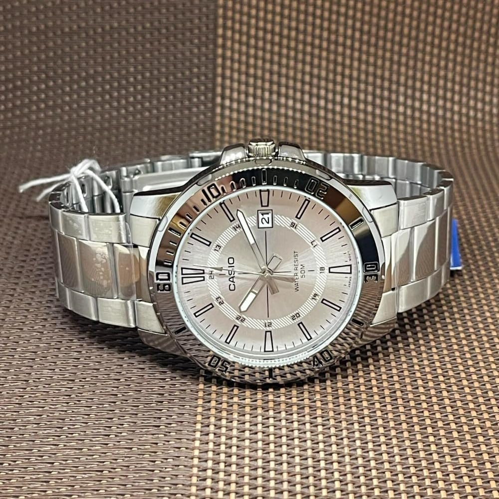 Casio MTP-VD01D-7CV Reloj Deportivo Analógico Casual para Hombre Enticer de Acero Inoxidable con Índices Plateados de 24 Horas