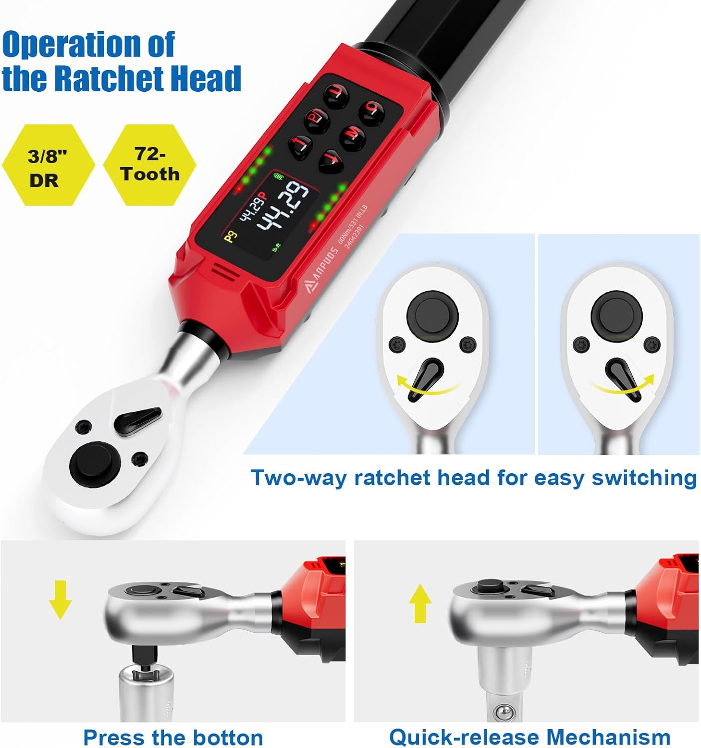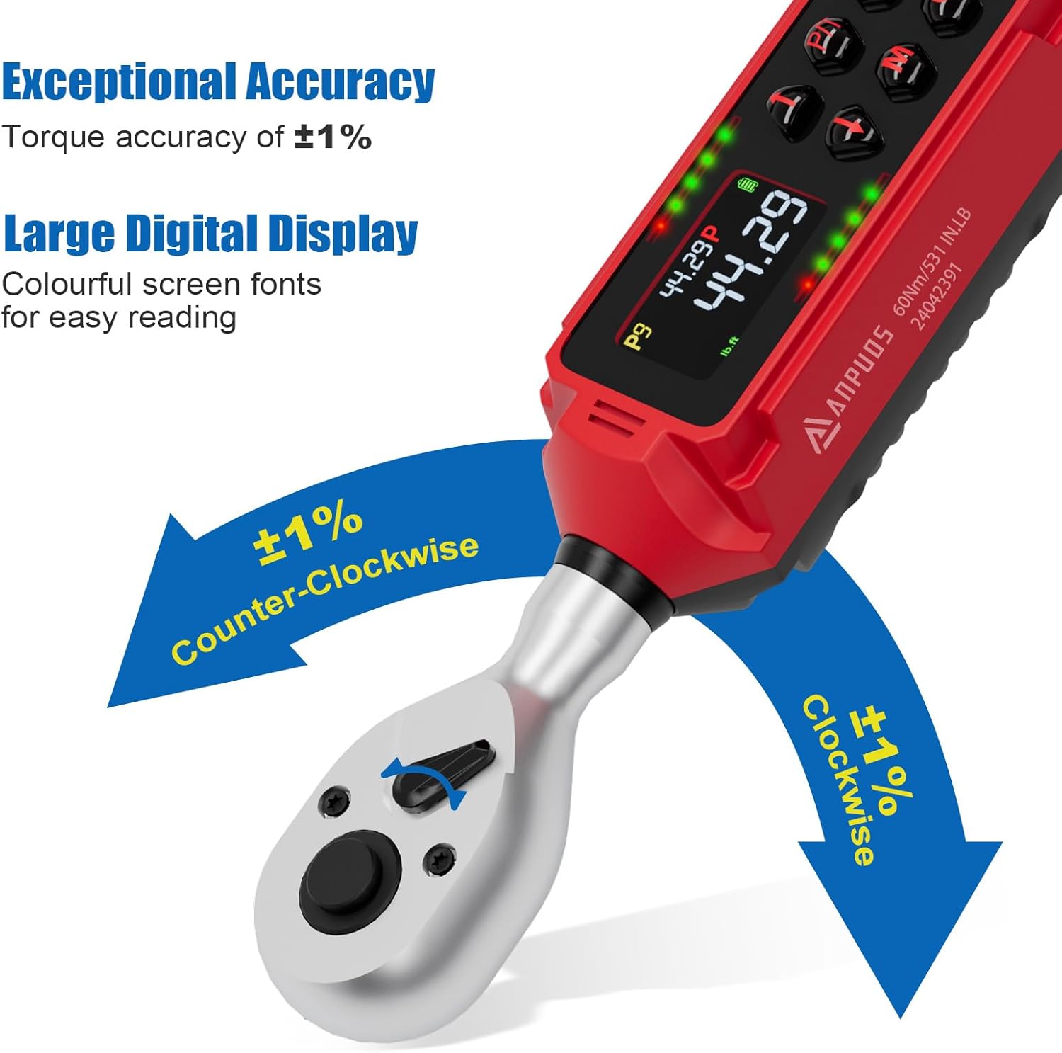 【±1% Alta Precisión】 Esta llave de torque electrónica de 3/8 pulgadas tiene una precisión de ±1%, con ajustes de torque ultra precisos que te permiten operar equipos electrónicos, equipos de computadora e instrumentos de precisión con facilidad y confianza.