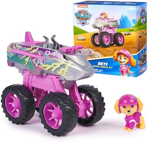Explora emocionantes misiones de rescate con Skye y su Ruedas de Rescate Jet! El camión monstruo de Skye tiene ruedas extragrandes, con diseño y estilo auténtico de PAW Patrol, ¡así que se ve igual que el vehículo del programa! Si presionas la aleta de su camión, salen las ruedas y se convierte en modo propulsor jet, antes de volar para salvar el día. Los juguetes de PAW Patrol para niños y niñas son excelentes regalos para los fanáticos del programa, para fomentar el juego de simulación imaginativo y mejorar las habilidades motoras finas. Revive momentos preciados de PAW Patrol, como los Mighty Pups y la película PAW Patrol o crea nuevas aventuras con los perros PAW Patrol individuales y sus respectivos autos de juguete (cada uno vendido por separado). Eleva la emoción con el equipo completo de Ruedas de Rescate, incluyendo vehículos PAW Patrol, figuras de acción y la nueva Torre de Comando PAW Patrol para horas interminables de aventuras aceleradas inspiradas en la serie!