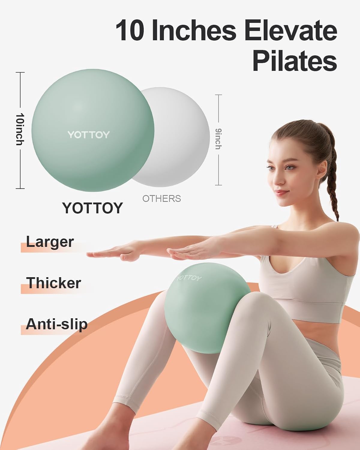 YOTTOY Bola de Pilates, Bola de Ejercicio de 10 pulgadas con Tecnología Anti-Ruptura para Estabilidad, Bola de Estabilidad para Yoga, Pilates, Fisioterapia, Gimnasio en Casa y Equipo de Fitness para Oficina