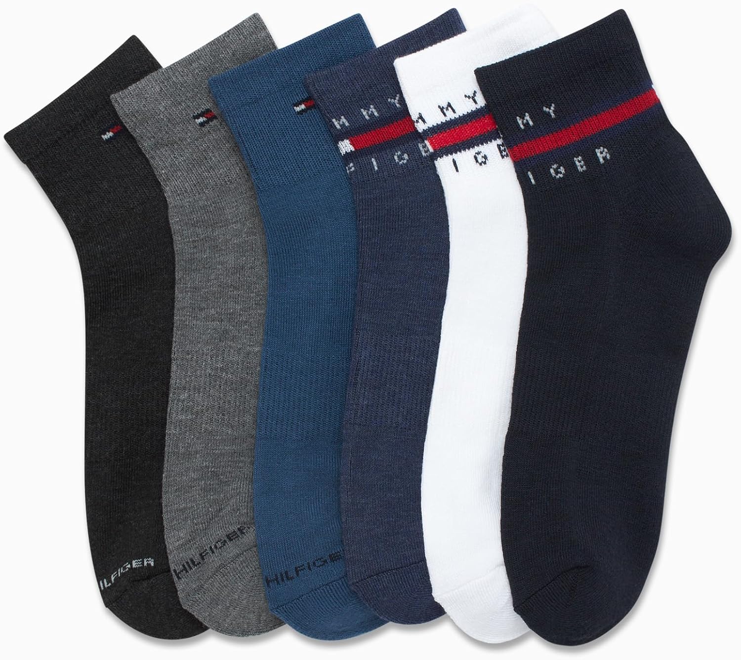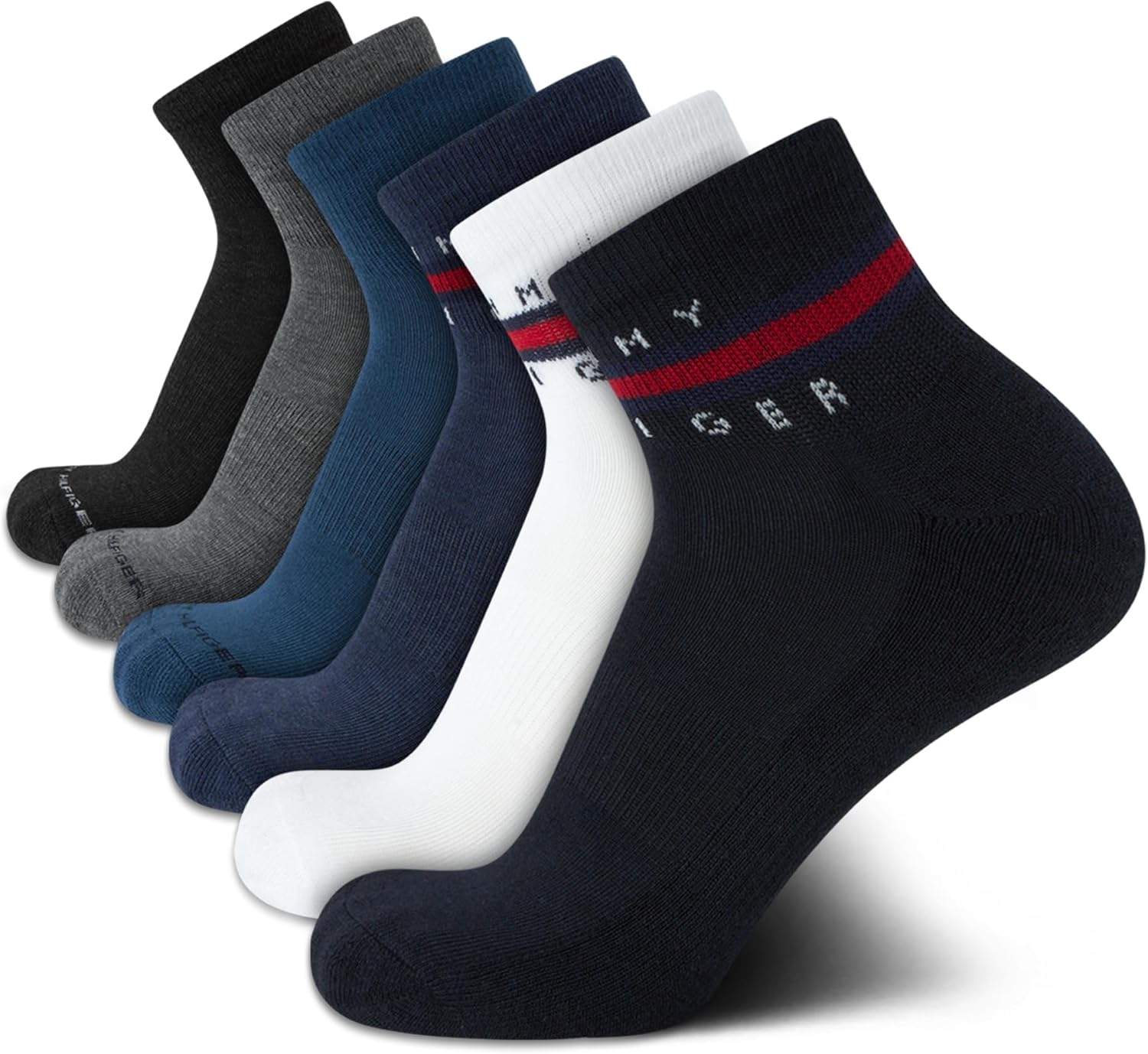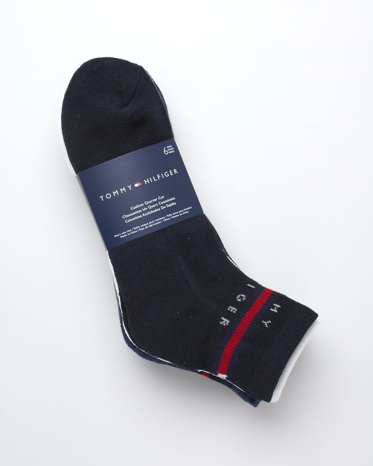 Tommy Hilfiger Hombres Calcetines Cortos - Paquete de 6 Calcetines Atléticos de Algodón Suave y Elásticos para Correr para Hombre (Tallas: 7-12)