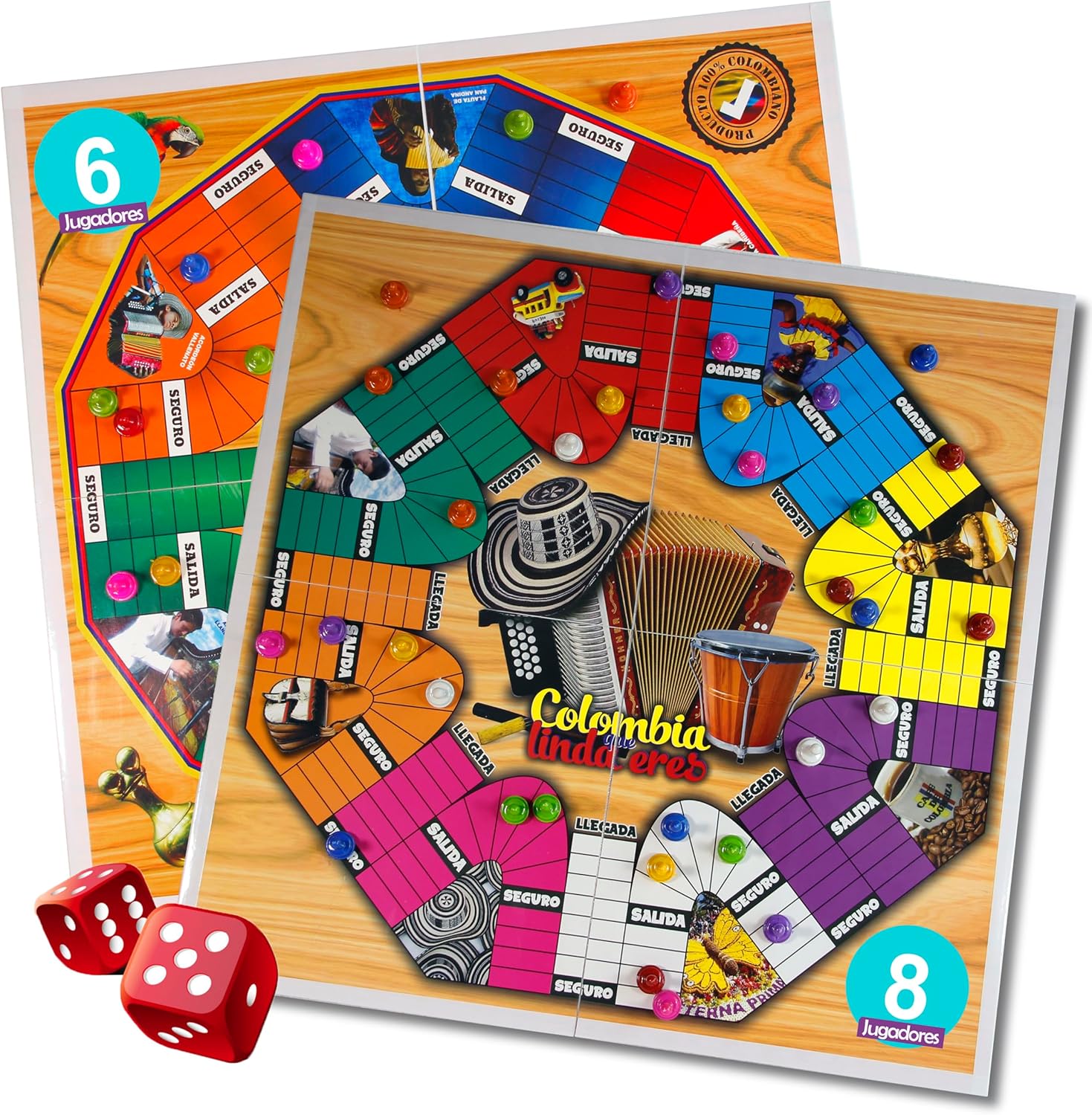 PARQUES Colombiano 8 y 6 JUGADORES 50x50 Magnético Parcheesi Tablero de Juego de Mesa 8 Jugadores parchis Juego Original Tablero juego de mesa Colombiano Cubano Madera Plegable adultos Colombian Parks Regalos
