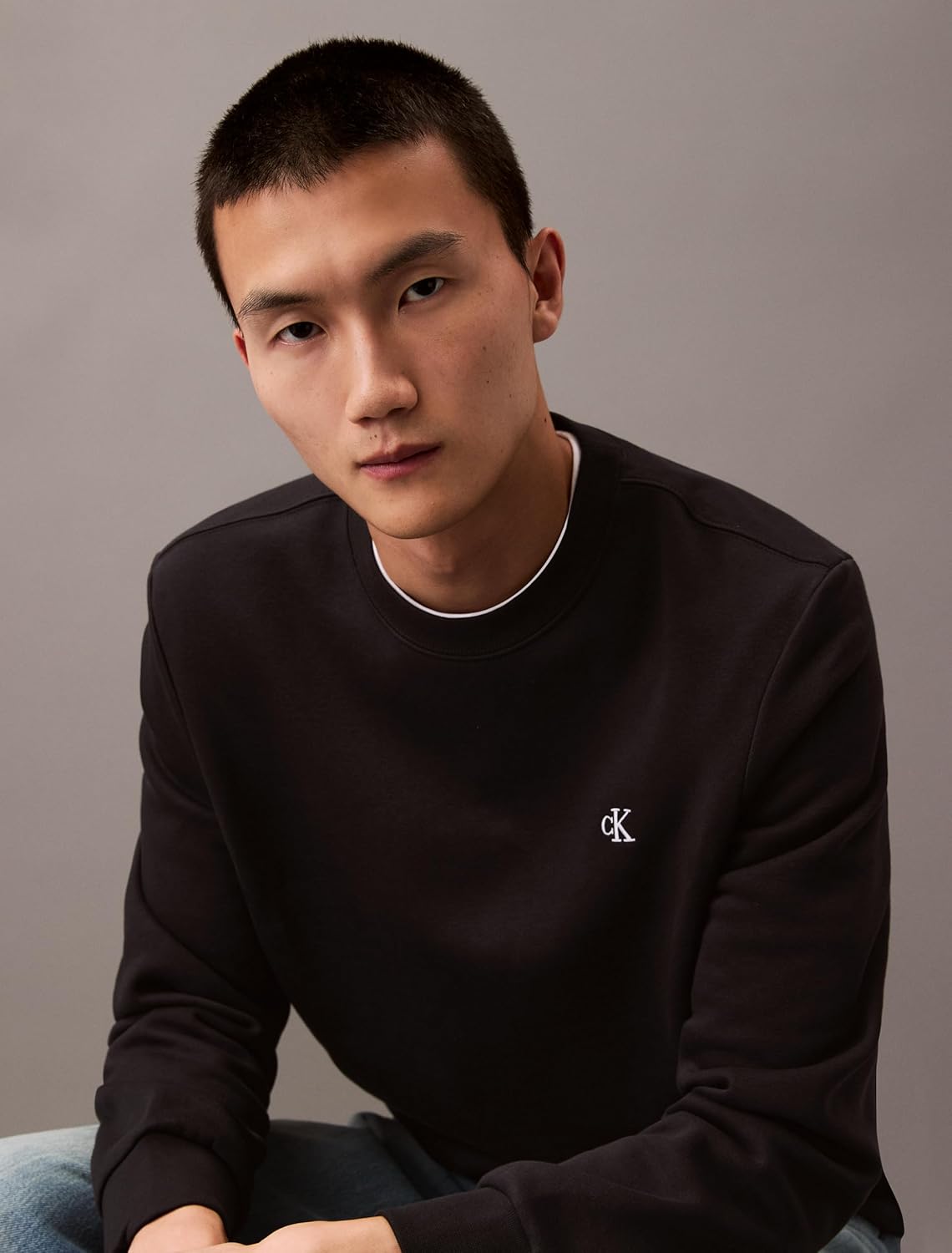 Diseñado con un cuerpo sólido y un logotipo monograma de inspiración retro, este suéter Calvin Klein presenta una mezcla de felpa de algodón y punto suave para una comodidad premium durante todo el día. Corte en ajuste relajado y ribete de punto. Un elemento esencial de moda, este suéter Calvin Klein es una pieza de capa versátil y de tendencia para cualquier colección.