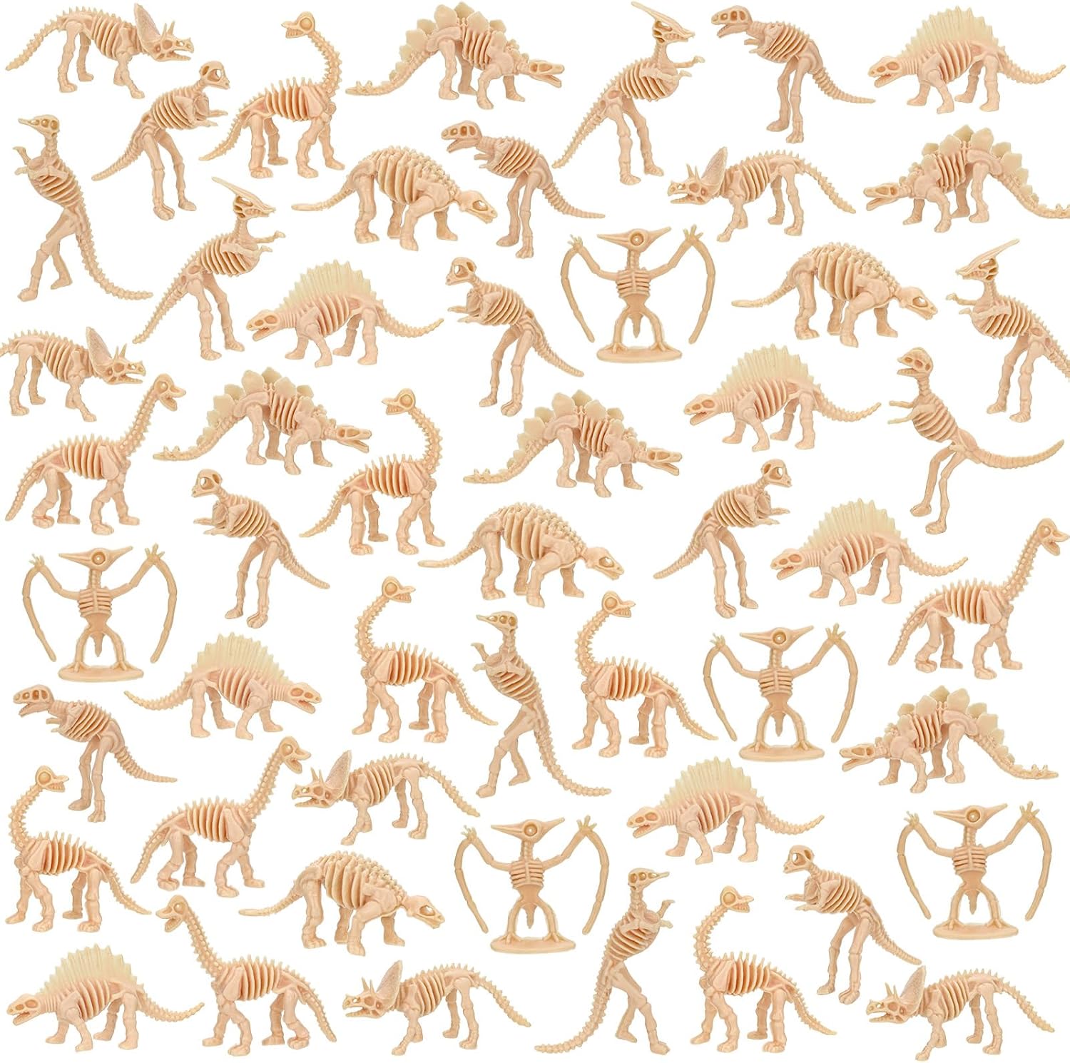 60 PCS Dinosaur Fossil Skeletons, Assorted Dinosaur Skeleton Toys Figures for Science Play Dino Sand Dig Party Favor Decorations