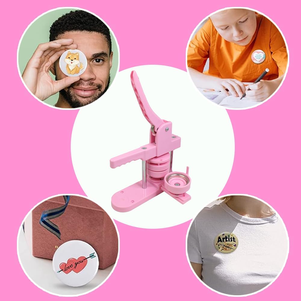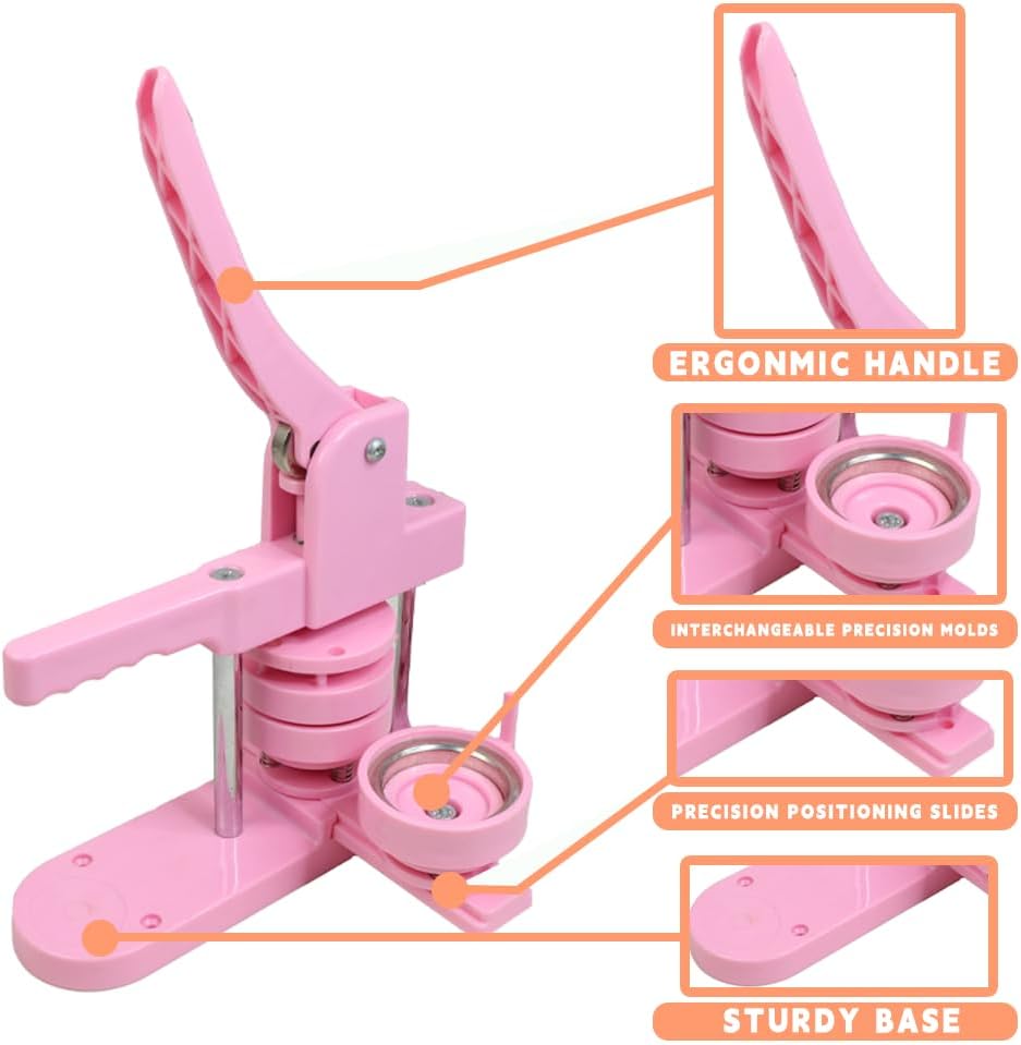 Button Maker Machine Multiple-Sizes, DIY Pin Button Maker Machine Kit with Interchangeable Button-Models&Free Button Parts&Circle Cutter&Wrench Gadget (Pink, 25+58mm)