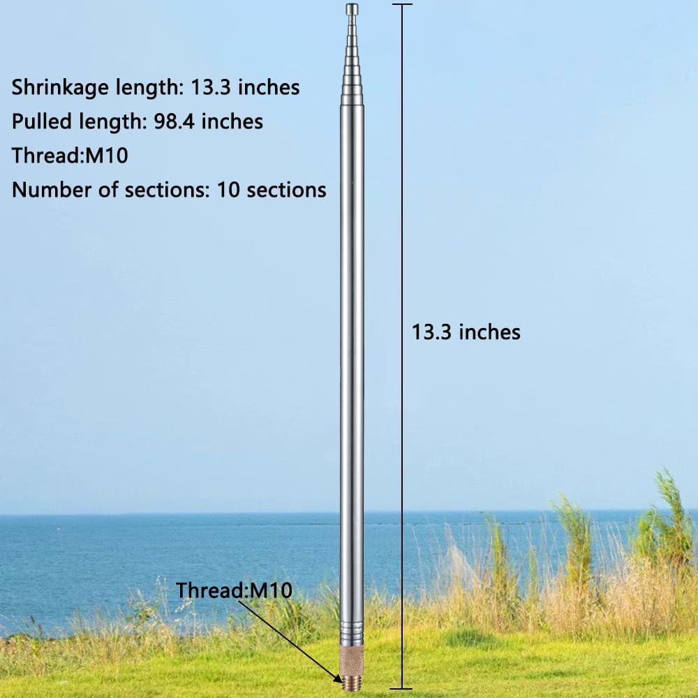 6:Contenido del paquete:4* Tubos de aluminio, 1* Base de aleación de aluminio, 1* Bobina inductiva multibanda, 1* Antena de palo de acero inoxidable(Longitud de tracción: 98.4 pulgadas), 1* Ancla de tierra, 1* Malla de tierra (10 hilos).