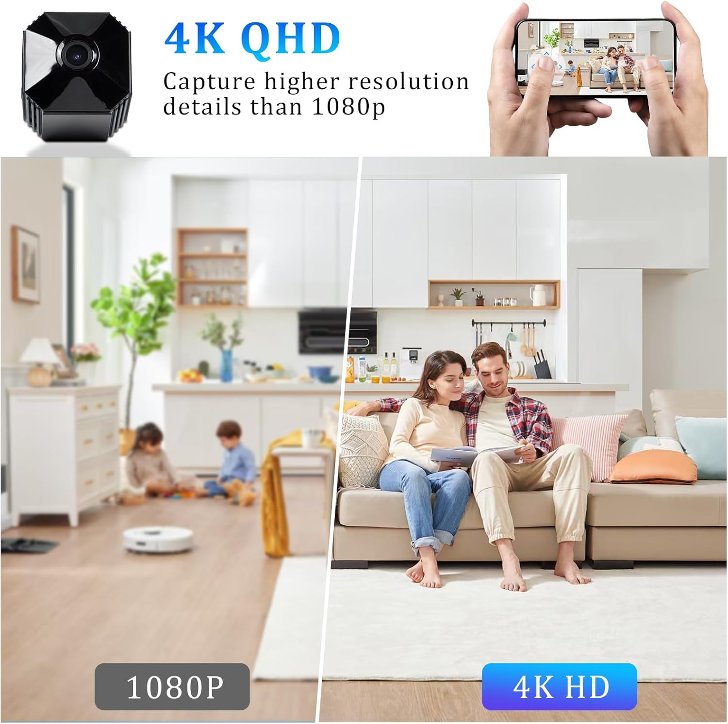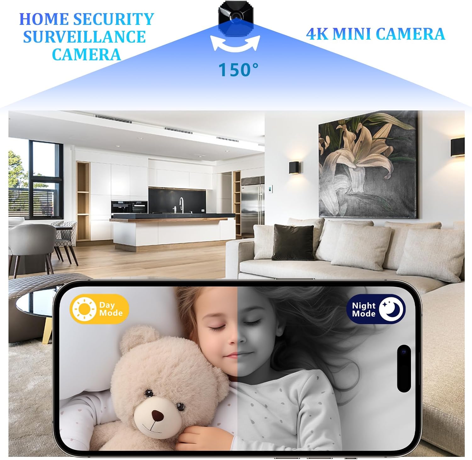 Starlight-level Night Vision: This mini camera is equipped with advanced environmentally adaptive night vision technology, which can cope with various lighting environments excellently and provide clear and vivid video effects. It also has infrared night vision function, which can take clear videos in low light. Whether it is day or night, cam can capture every details.
