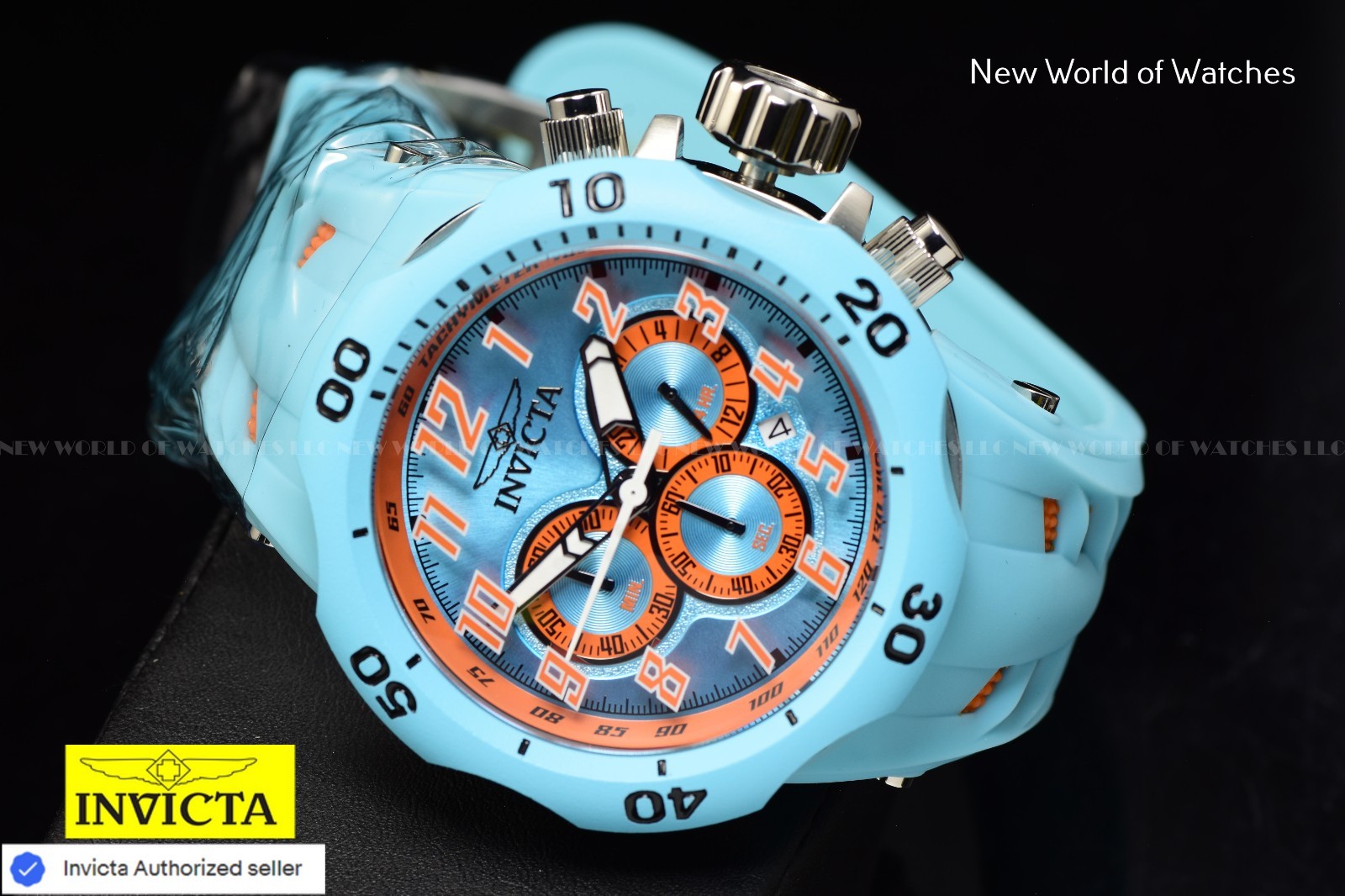 Invicta Men's VENOM HYDRA 52mm Chronograph Dial LightBlue/ Orange Watch