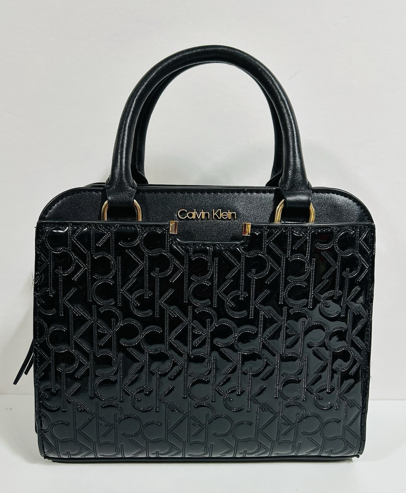 Elevate your style with this sleek Calvin Klein crossbody bag, perfect for any occasion. The bag features a classic black faux leather exterior with the brand's iconic logo pattern. The roomy interior is lined with a black fabric, providing enough space to store your essentials. The bag has a medium size of 10in x 9in x 4in, with a detachable strap, making it a versatile accessory to carry around. The bag has a zip and magnetic closure to keep your items secure. The gold hardware adds a touch of elegance to the overall design.