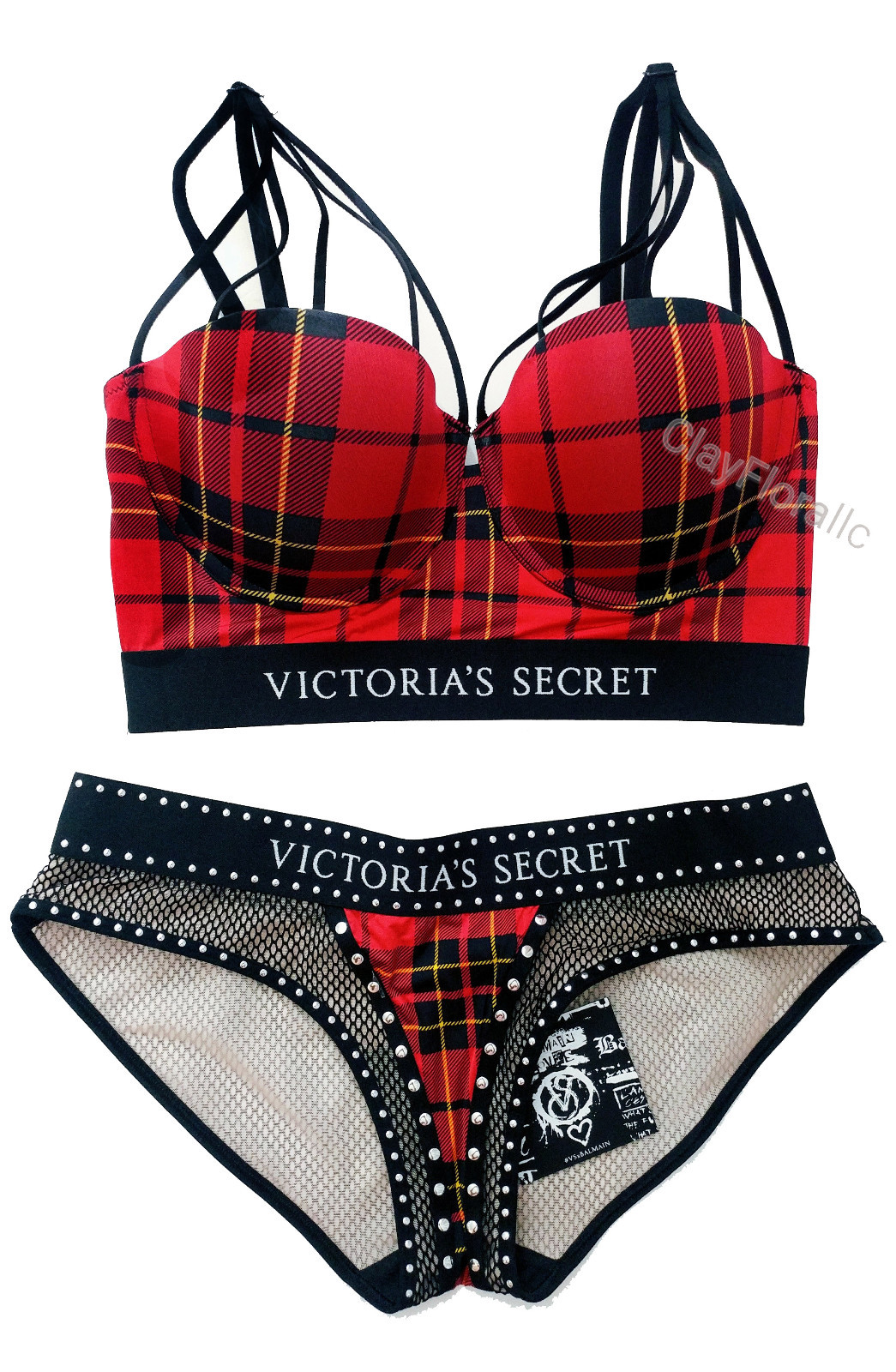 36C Victoria's Secret Balmain long line Bra Panty set Fashion show S M bling