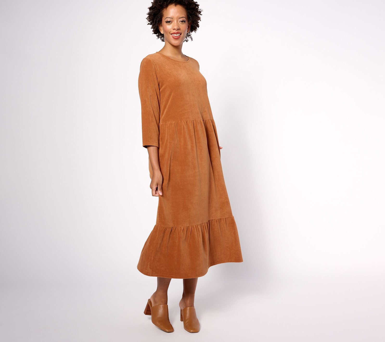 Denim & Co. Women's Dress Sz M Regular Heritage Velour Knit Midi Brown A624163