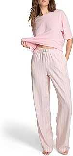 Cotton Tee Pajama Set, Short Sleeve Shirt and Long Flannel Pants, Pajamas for Women, Pretty Blossom, XS