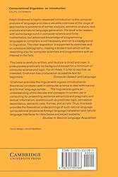 - In spite of the rapid growth of interest in the computer analysis of language, this book provides an integrated introduction to the field. Inevitably, when many different approaches are still being considered, a straightforward work of synthesis would be neither possible nor practicable. Nevertheless, Ralph Grishman provides a valuable survey of various approaches to the problems of syntax analysis, semantic analysis, text analysis and natural language generation, while considering in greater detail those that seem to him most productive. The book is written for readers with some background in computer science and finite mathematics, but advanced knowledge of programming languages or compilers is not necessary and nor is a background in linguistics. The exposition is always clear and students will find the exercises and extensive bibliography supporting the text particularly helpful.