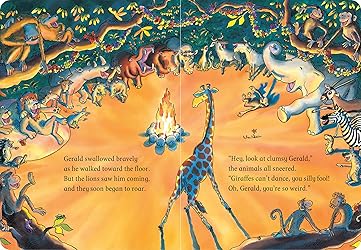 - Gerald the giraffe longs to dance but his knees seem to buckle whenever he tries to twirl. Will he learn to sway to his own sweet tune? A gentle ode to dancing to the beat of your own drum -- in board book!Giraffes Can't Dance is a touching tale of Gerald the giraffe, who wants nothing more than to dance. With crooked knees and thin legs, it's harder for a giraffe than you would think. But with some words of encouragement from an unlikely friend, he might just find the courage to be himself on the dance floor.With light-footed rhymes and high-stepping illustrations, this tale is gentle inspiration for every child with dreams of greatness.