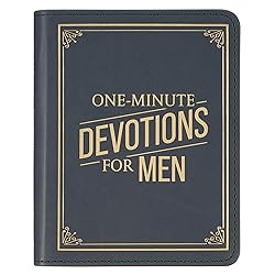 - The One-Minute Devotions® for Men Slate Blue Faux Leather Devotional offers a powerful daily reminder that you’re never walking alone.When life feels heavy—maybe you’re overwhelmed at work, carrying the weight of family responsibilities, or facing challenges that seem too big to bear—God promises to walk with you, strengthen you, and guide you through it all.Each of the 365 devotions in this devotional encourages men to keep God and His Word at the center of daily life. Each entry is short but impactful—anchored in Scripture and illuminated with a devotional insight designed to bring hope, focus, and renewed purpose to your day. You’ll be reminded that nothing is impossible for the God who created it all.Inside, the 368 one-color pages are cleanly laid out and easy to read. Its compact size makes it easy to keep on your nightstand, slip into your bag, or take to the office for a midday reset.These devotions are meant to meet men where they are—in the thick of life—with strength, encouragement, and truth from God’s Word. Whether you're reading before the day begins or winding down at night, this devotional provides a steady rhythm of truth to keep you anchored in your faith.The daily devotional for men makes a meaningful gift for dads, husbands, brothers, or any man who seeks God’s wisdom in the day-to-day. The One-Minute Devotions® for Men Slate Blue Faux Leather Devotional a strong, faith-filled gift for birthdays, Father’s Day, holidays, or as a quiet encouragement in a busy season.Gold-foiled frame with geometric corner scrolls cover design Slate blue faux leather Gold-foiled title One-color interior Navy ribbon marker 365 devotions 400 pages Size: 5.6" x 4.5" x 1" (142 x 114 x 25mm)