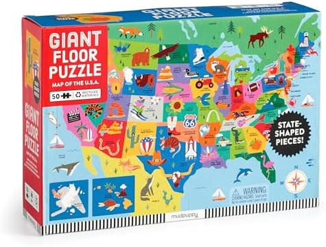 - PERFECT FOR GIFTING – A perfect gift for the geography loving young one in your life, the Map Of The USA 48 Piece Giant Floor Puzzle is made of sturdy greyboard and is brightly colored to engage young children's senses and encourage screen free playtime. The puzzle is designed to develop problem solving skills, spatial reasoning, and hand-eye coordination, all while having fun!