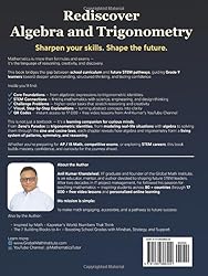 - Rediscover Algebra and Trigonometry – Foundations for High School and Beyond For Grade 9 Learners on AP, IB & STEM Pathways Sharpen your skills. Shape the future. About the Book Mathematics is not just about solving problems — it’s about seeing patterns, building logic, and connecting ideas. This book invites learners to rediscover algebra and trigonometry as a living language of reasoning, structure, and design — not as disconnected formulas. Built for today’s STEM-driven learners, Rediscover Algebra and Trigonometry strengthens the bridge between school mathematics and the conceptual depth demanded in AP, IB, and university-prep programs. What Makes This Book Extraordinary Students don’t just learn — they explore, prove, and rediscover through engaging examples and challenge problems such as: • 🌀 Zeno’s Paradox – experience infinity in motion through algebraic reasoning. • 🧩 Multi-Layer Fractions – simplify nested ratios to develop structural thinking. • 📈 Four Forms of a Line – connect slope-intercept, point-slope, intercept, and general forms. • 🔺 Three Simultaneous Equations – visualize intersections of planes in 3-D space. • ⚖️ Linear, Absolute-Value, and Quadratic Inequalities – interpret and graph solution sets with confidence. • 📊 Non-Linear Sequences & Finite Differences – find patterns and build predictive rules. • 🔢 Function Notation and Transformations – see how shifts and reflections reshape graphs. • 🧭 Linearization Techniques – convert non-linear relationships into linear form for data modeling. • ⚙️ Componendo & Dividendo – master elegant classical simplifications. • 🧮 Layered Quadratic Method – uncover symmetry and structure in quadratics. • 📈 Partial Factoring for Optimization – link algebraic methods to real-world optimization. • 🔷 Lattice Points in Triangles and Circles – apply GCD and Pick’s Theorem to connect algebra, geometry, and number theory. • 🧱 Pythagorean Triples – generate integer solutions using four distinct methods. • 🔭 Mersenne Primes – explore the bridge between primes, powers of two, and modern cryptography. • 📐 Height & Distance Applications – solve trigonometric problems across ten structured categories. • 🔍 Similar Triangles & Tangent–Chord Relations – blend geometry and trigonometry through discovery. • 🧠 Proving Trigonometric Identities – strengthen logical flow through structured proofs. Structured Learning for STEM Readiness Each chapter combines conceptual clarity, visual reasoning, and guided exploration, helping students develop the analytical mindset essential for physics, engineering, computer science, and applied mathematics. Interactive QR codes connect to 17,000+ free video lessons by Anil Kumar Khandelwal, creating a complete ecosystem for both classroom learning and independent study. The book concludes with comprehensive Practice Tests—including SAT, ACT, and Olympiad-level challenges—to ensure mastery, confidence, and true readiness for higher-level STEM studies. Why Rediscover Algebra and Trigonometry? Because true learning isn’t about moving faster — it’s about seeing deeper. — Anil Kumar Khandelwal Founder, Global Math Institute Inc.