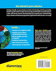- Get ahead in pre-calculusPre-calculus courses have become increasingly popular with 35 percent of students in the U.S. taking the course in middle or high school. Often, completion of such a course is a prerequisite for calculus and other upper level mathematics courses.Pre-Calculus For Dummies is an invaluable resource for students enrolled in pre-calculus courses. By presenting the essential topics in a clear and concise manner, the book helps students improve their understanding of pre-calculus and become prepared for upper level math courses.Provides fundamental information in an approachable mannerIncludes fresh example problemsPractical explanations mirror today’s teaching methodsOffers relevant cultural referencesWhether used as a classroom aid or as a refresher in preparation for an introductory calculus course, this book is one you’ll want to have on hand to perform your very best.