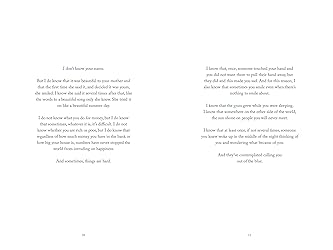 - *May this book find the person it needs to. May they find every word they were looking for.* **I know you don’t want to talk sometimes. Sometimes because it hurts and sometimes because you’re just not supposed to talk about what you want to talk about. Sometimes it can be hard to say, “this is beautiful,” when no one else can see what you see. Or, “Here, this is where the pain is.” But some part of you knows, the truth about the words you cannot say is that they only hurt until you say them. They only hurt until the person who needs to hear them, hears them. Because we are human, and the closest we’ve ever come to showing each other who we really are, and how we love, is with words. So I’m going to try to say to you here, what I wish you’d say to me too. Please. Listen. We can change things. Here.