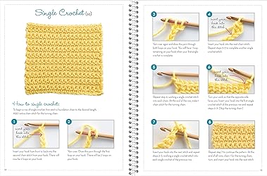 - Crochet Techniques & Tips: The Essential Step-by-Step Guide for Beginners and Experienced CrochetersWhether you're picking up a hook for the first time or building on existing skills, Crochet Techniques & Tips is your go-to guide for learning how to crochet with confidence.Teaches the core techniques and stitches you need to create beautiful handmade piecesClear, step-by-step instructionsFull-color photographsSpiral-bound design lays flat and stays open, making it easy to practice as you crochetInside, you’ll learn how to:Hold your hook and yarnMake 20+ essential crochet stitchesIncrease and decrease stitchesCrochet in the roundJoin new yarnSeam and join finished piecesAdd edging, borders, finishing touches, and more!With simple tutorials and helpful visuals, this book makes learning crochet fun, frustration-free, and easy to follow―from your first slip knot to your final stitch.