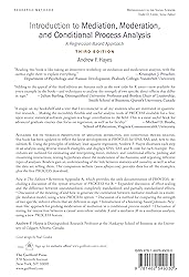- Acclaimed for its thorough presentation of mediation, moderation, and conditional process analysis, this book has been updated to reflect the latest developments in PROCESS for SPSS, SAS, and, new to this edition, R. Using the principles of ordinary least squares regression, Andrew F. Hayes illustrates each step in an analysis using diverse examples from published studies, and displays SPSS, SAS, and R code for each example. Procedures are outlined for estimating and interpreting direct, indirect, and conditional effects; probing and visualizing interactions; testing hypotheses about the moderation of mechanisms; and reporting different types of analyses. Readers gain an understanding of the link between statistics and causality, as well as what the data are telling them. The companion website (www.afhayes.com) provides data for all the examples, plus the free PROCESS download. New to This Edition Rewritten Appendix A, which provides the only documentation of PROCESS, including a discussion of the syntax structure of PROCESS for R compared to SPSS and SAS. Expanded discussion of effect scaling and the difference between unstandardized, completely standardized, and partially standardized effects. Discussion of the meaning of and how to generate the correlation between mediator residuals in a multiple-mediator model, using a new PROCESS option. Discussion of a method for comparing the strength of two specific indirect effects that are different in sign. Introduction of a bootstrap-based Johnson–Neyman-like approach for probing moderation of mediation in a conditional process model. Discussion of testing for interaction between a causal antecedent variable [ital]X[/ital] and a mediator [ital]M[/ital] in a mediation analysis, and how to test this assumption in a new PROCESS feature.