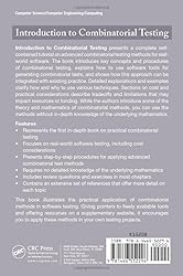 - Combinatorial testing of software analyzes interactions among variables using a very small number of tests. This advanced approach has demonstrated success in providing strong, low-cost testing in real-world situations. Introduction to Combinatorial Testing presents a complete self-contained tutorial on advanced combinatorial testing methods for real-world software.The book introduces key concepts and procedures of combinatorial testing, explains how to use software tools for generating combinatorial tests, and shows how this approach can be integrated with existing practice. Detailed explanations and examples clarify how and why to use various techniques. Sections on cost and practical considerations describe tradeoffs and limitations that may impact resources or funding. While the authors introduce some of the theory and mathematics of combinatorial methods, readers can use the methods without in-depth knowledge of the underlying mathematics.Accessible to undergraduate students and researchers in computer science and engineering, this book illustrates the practical application of combinatorial methods in software testing. Giving pointers to freely available tools and offering resources on a supplementary website, the book encourages readers to apply these methods in their own testing projects.