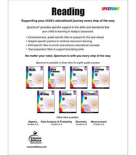 Spectrum Reading Comprehension Grade 8, Ages 13 to 14, 8th Grade Workbooks, Nonfiction and Fiction Passages, Analyzing and Summarizing Story Structure Using Context Clues and Citations - 160 Pages