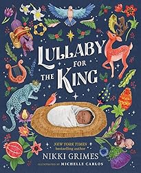 - An awe-inspiring Christmas tale from multi-award-winning poet Nikki Grimes.The caravan traveled through wilderness, uphill and down, for hours that spun into days.Then at last, glittering diamond-bright, Bethlehem appeared through the haze.With glittering poetry and stunning watercolor artwork, Lullaby for the King ushers readers into the awe and wonder of the Christmas story. Animals from across the ancient Palestinian landscape lumber, gambol, crawl, fly, and parade toward Bethlehem with gifts worthy of the newborn King. Rare ebony wood, a finely tuned harp, mustard and saffron, a zither, apricot cakes, and other treasures are carried to the manger. The animals bow low and join the music of the angels in a welcoming lullaby.New York Times bestselling author Nikki Grimes and illustrator Michelle Carlos bring together a captivating tale of awe, wonder, and imagination that is sure to become a holiday classic.