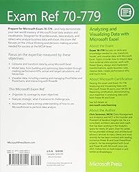 - Prepare for Microsoft Exam 70-779–and help demonstrate your real-world mastery of Microsoft Excel data analysis and visualization. Designed for BI professionals, data analysts, and others who analyze business data with Excel, this Exam Ref focuses on the critical thinking and decision-making acumen needed for success at the MCSA level. Focus on the expertise measured by these objectives: Consume and transform data by using Microsoft Excel Model data, from building and optimizing data models through creating performance KPIs, actual and target calculations, and hierarchies Visualize data, including creating and managing PivotTables and PivotCharts, and interacting with PowerBI This Microsoft Exam Ref: Organizes its coverage by exam objectives Features strategic, what-if scenarios to challenge you Assumes you have a strong understanding of how to use Microsoft Excel to perform data analysis