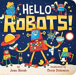 - New from beloved author Joan Holub, Hello Robots! is a fun, playful board book about robots and sequencing! Hello Buzz. Hello Beep. Hello robots fast asleep. Wake up! Get dressed, robots! Perfect for reading out loud, Joan Holub’s hilarious text and Chris Dickason’s lively illustrations will have little ones learning and laughing as they try to help sleepy robots complete their morning routine in the correct order. A clever, interactive approach to first concepts, the Hello board book series introduces important “next-step” concepts like sequencing in a hilariously engaging way.