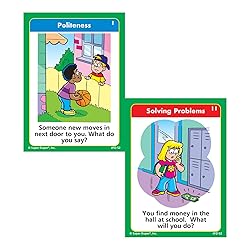 56 colorful, illustrated cards (2½" x 3½") - each features a social scene with an open-ended question Fun, engaging way to practice various social skills Four bonus playing cards for game variations Educational - Helps children improve decision-making and behavior in different social situations.