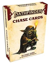 - Whether you're the hunter or the hunted, Pathfinder Chase Cards make your choices during the pursuit matter. Each full-color card in this beautifully illustrated 55-card deck contains obstacles to overcome during your chase, from an angry barking dog to an imposing stone wall, each one using checks from the Pathfinder Second Edition Roleplaying Game. Make the right check to overcome the obstacles and you might just catch your prey, but fail and you might be left with a cold trail. Lay the cards down on your table to create the path of your chase, allowing you to track each character's progress and determine the die rolls needed to avoid or navigate unexpected dangers. Lay out a desperate pursuit through a crowded city, a dangerous race through hostile wilderness, and a nerve-wracking run through deadly ruins and abandoned buildings―or mix and match the cards to create a chase that moves through multiple regions!