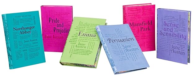 - Fall in love with Jane Austen’s timeless romances in this stunning six-volume collector’s set. Celebrate the timeless charm of Jane Austen’s beloved novels with this beautifully designed six-volume boxed set. Featuring witty heroines, elusive romances, and sharp social commentary, Austen’s stories have captivated readers for generations and continue to inspire countless stage and screen adaptations. This elegant collection includes… Sense and SensibilityPride and PrejudiceEmmaMansfield ParkPersuasionNorthanger Abbey Each book is crafted with decorative spines, custom endpapers, and painted page edges that form a stunning scene across the set. More than just novels, these editions are a work of art for your bookshelf—perfect for readers, collectors, and interior design enthusiasts alike. Whether you’re rediscovering Austen’s classics or experiencing them for the first time, this set offers heartwarming romance, clever heroines, and enduring literary beauty. A must-have for fans of classic literature, historical romance, and elegant book design.