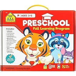 School Zone Full Learning Program for Preschool: Curriculum Set of Workbooks, Flash Cards, Early Reading, Educational Games, Write & Reuse, Alphabet, Numbers, Math, Colors, Shapes, Stickers, and More