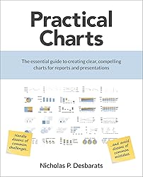 - It's surprisingly tricky to design simple, "everyday" charts for reports and presentations. Even experienced data pros and major news media outlets often create charts that leave audiences bored, unconvinced, confused, or—worst of all—that accidentally misrepresent the underlying data. Why does this happen? Well, design decisions like choosing a chart type, choosing colors, and deciding what range a scale should span require a surprising amount of expertise to get right. Practical Charts provides easy-to-follow, concrete guidelines that quickly enable chart makers of any experience level to design expert-level charts that are clear and compelling. Readers will learn how to tackle over 90% of the chart design challenges that arise in real-world situations and how to avoid over 90% of the common mistakes that chart creators make. Written in an entertaining, jargon-free style by globally recognized data visualization expert Nick Desbarats, Practical Charts condenses the courses that he's delivered for NASA, The United Nations, Blomberg, Visa, Yale University, and many others into an easy-to-read book that includes...When to use 30 essential chart types17 chart design cheat sheetsOver 180 key takeaways