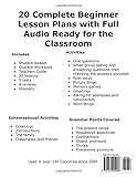 - 20 Beginners ESL Lesson Plans with full audio - Ready for the Classroom Includes full audio, and video! 3 books - Student reader, student workbook and complete teacher guide! Our curriculum is used in over 100 countries since 2005 Includes:5 tests, 4 reviewsStudent Reader - with games, role plays, oral questions & small group activitiesStudent Workbook - role play, written activitiesTeacher Guide - full instructions, answers to written activities, and conversational activitiesFun and Engaging Conversational Activities and Role Plays like: GreetingsIntroductionsThe familyTaking to classmates and friendsActivities and Games include Oral questionsSmall group asking and answering questions then checking the answers providedRole-playsPicture BingoMemory gamesGreetingsAsking for addresses and nationalitiesWord Bingo