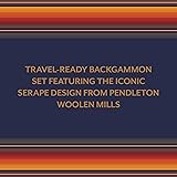 CLASSIC PENDLETON PATTERN GAME: This travel-ready backgammon set from the iconic Pendleton brand features a beautifully designed canvas board and snap-on vegan leather pouch for storing pieces. BACKGAMMON SET FOR ON-THE-GO FUN: Backgammon is a classic family game—now it's easy to bring anywhere. Combining convenience with style, this set rolls up just like a Pendleton blanket for swift storage and easy travel. HERITAGE BRAND WITH TIMELESS APPEAL: The Pendleton brand has a 150-year heritage, and its products are made with time-honored quality and craftsmanship. HANDSOME GIFT: This is an easy gift for holidays, housewarmings, Mother's Day, Father's Day, or for recent graduates embarking on a new adventure or people who love to travel and camp. PERFECT FOR: Fans of the Pendleton brand; Southwest-inspired print and art enthusiasts; gift for couples and families who enjoy camping and traveling together; family game night; Pendleton shoppers looking for attractive presents for family and friends.