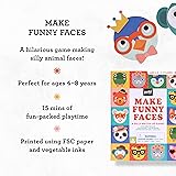 - A hilarious game of silly faces that is made for family fun! Ready to compete to finish your funny animal face first? Take turns rolling the die to determine which feature or accessory you’ll add. Already have that piece? Try again on your next turn! Keep rolling until you’ve completed your animal, then take another face and start again. The first player to finish three funny faces is the winner! Short on time or want to amp up the pace? Try to complete all three faces at once! Make Funny Faces game from Petit Collages is perfect for 2–3 players, ages 4 and up, and includes 10 animal faces, 62 feature and accessory pieces, a wooden die, and English, Dutch, French, German, Italian, and Spanish instructions. Printed using FSC paper and vegetable inks, and the packaging is made using 75% recycled materials.