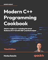 - Meta Description: With a wealth of practical recipes, this third edition isn't just a guide to C++23; it's a complete resource covering key features and techniques from C++11 through to C++23. It's designed to keep you ahead of the curve in C++.Key FeaturesFully updated and packed with new recipes, including sync output streams, expected and mdspan, and C++20/23 range adaptorsCovers all significant features from all modern versions of the standard, providing comprehensive insights into modern C++Learn through a series of hands-on, self-contained recipesPurchase of the print or Kindle book includes a free eBook in PDF formatBook DescriptionThe updated third edition of Modern C++ Programming Cookbook addresses the latest features of C++23, such as the stack library, the expected and mdspan types, span buffers, formatting library improvements, and updates to the ranges library. It also gets into more C++20 topics not previously covered, such as sync output streams and source_locationThe book is organized into practical recipes covering a wide range of real-world problems, helping you find the solutions you need quickly. You’ll find coverage of all the core concepts of modern C++ programming and features and techniques from C++11 through to C++23, meaning you’ll stay ahead of the curve by learning to incorporate the newest language and library improvementsBeyond the core concepts and new features, you’ll explore recipes related to performance and best practices, how to implement useful patterns and idioms, like pimpl, named parameter, attorney-client, and the factory pattern, and how to complete unit testing with the widely used C++ libraries: Boost.Test, Google Test, and Catch2With the comprehensive coverage this C++ programming guide offers, by the end of the book you’ll have everything you need to build performant, scalable, and efficient applications in C++.What you will learnExplore the new C++23 language and library featuresGo deep into the most useful C++20 featuresLearn to handle threading and concurrency for better performanceSolve complex string manipulation tasks efficiently with regexLeverage the standard library for faster developmentMaster the file system library to work with files and directoriesWork with different types of strings and understand compilationSee how you can use CRTP, mixins and other patterns in C++Who this book is forThis book is designed for entry- and intermediate-level programmers who already have a foundational understanding of the C++ programming language, but who are looking to master the language, implement the newest features, and become proficient modern C++ developers. Experienced C++ programmers can leverage the recipes in this book to quickly get up to speed on all the most important language and library features of C++11/14/17/20 and 23.Table of ContentsLearning Modern Core Language FeaturesWorking with Numbers and StringsExploring FunctionsPreprocessing and CompilationStandard Library Containers, Algorithms, and IteratorsGeneral-Purpose UtilitiesWorking with Files and Streams Leveraging Threading and Concurrency Robustness and PerformanceImplementing Patterns and IdiomsExploring Testing FrameworksC++23 Features