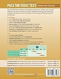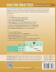 - Pass the TOEIC Test new edition is a thoroughly comprehensive, authentic, and up-to-date preparation course for the TOEIC test. Ideal for self-study or class use, the course builds confidence and boosts test scores for students on the Listening and Reading sections of the TOEIC test. KEY FEATURES - over 1500 high-quality practice items - clear step-by-step skills development - effective test-taking strategies - preview tests and full-length review tests for each part - regular Mini Tests assess performance at every stage - full-length Listening Comprehension Test and Reading Test - Grammar and Vocabulary sections focus on language use - two complete Practice Tests for reliable assessment PLUS - complete Audio Program - detailed Answer key and full Audioscript - Essential Vocabulary with over 500 key words and phrases - useful accent recognition exercises - website support with free activities for students and teachers - unique access code giving one free online Practice Test This is the Advanced Course. After completing all the exercises in this book, you should be able to achieve a score of around 900 on the TOEIC test. Of course, if you study hard your score may be a lot higher than 900.