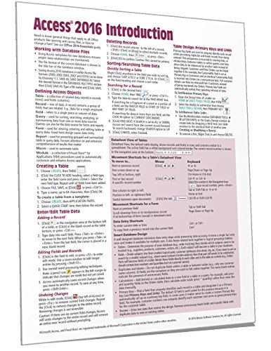 Microsoft Access 2016 Introduction Quick Reference Guide - Windows Version (Cheat Sheet of Instructions, Tips & Shortcuts - Laminated Card)