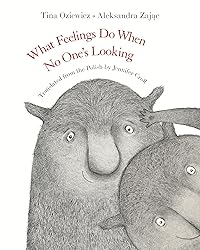 - An unruly cast of emotions come alive in this romping dreamworld, a place Maurice Sendak’s Wild Things could call home Curiosity, a lithe and floppy-eared creature, perches above the open world and gazes out with a zippy blend of hope, wonder, and longing. From the tip of a chimney, we bound into the quiet and mischievous world of feelings, meeting a troupe of tufted creatures as we go. Sympathy helps snails cross a sidewalk to safety, fear pirouettes in an attempt to camouflage with wallflowers, and pleasure reclines across a doily-donned reading chair, sipping a cup of tea. Elsewhere, our insecurities – pesky, cavorting beings – build intricate cages and stride about with clattering sets of keys. Tina Oziewicz’s words hum with truth, and Aleksandra Zajac’s illustrations bloom and burst with charming details like a sail constructed out of a pair of billowing long johns or a red slipper falling from a contented paw. Taking in the perfect harmony of this book is like taking a long gulp from a trusty thermos and filling up with warmth. What Feelings Do When No One’s Looking surprises and soothes, inspires us to feel.