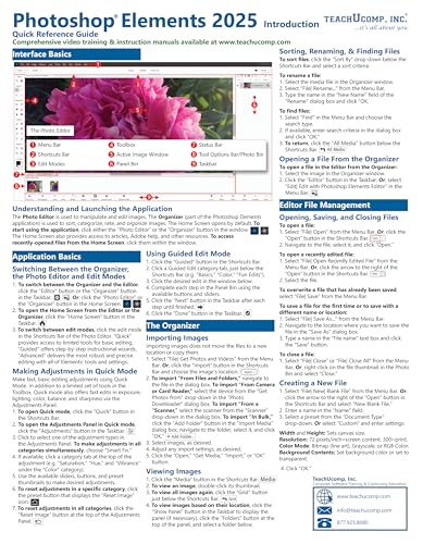 Adobe Photoshop Elements 2025 Introduction Quick Reference Training Tutorial Guide (Cheat Sheet of Instructions, Tips & Shortcuts - Laminated Card)