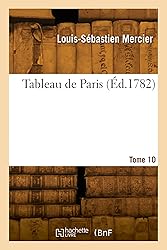 - Tableau de Paris. Tome 10 / . Nouvelle édition corrigée & augmentée Date de l'édition originale : 1782-1788 Le présent ouvrage s'inscrit dans une politique de conservation patrimoniale des ouvrages de la littérature Française mise en place avec la BNF. HACHETTE LIVRE et la BNF proposent ainsi un catalogue de titres indisponibles, la BNF ayant numérisé ces oeuvres et HACHETTE LIVRE les imprimant à la demande. Certains de ces ouvrages reflètent des courants de pensée caractéristiques de leur époque, mais qui seraient aujourd'hui jugés condamnables. Ils n'en appartiennent pas moins à l'histoire des idées en France et sont susceptibles de présenter un intérêt scientifique ou historique. Le sens de notre démarche éditoriale consiste ainsi à permettre l'accès à ces oeuvres sans pour autant que nous en cautionnions en aucune façon le contenu. Pour plus d'informations, rendez-vous sur www.hachettebnf.fr