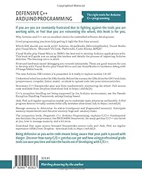 - Defensive C++ Arduino ProgrammingIf you are you are constantly frustrated due to fighting against the tools you are working with, or feel that you are reinventing the wheel, this book is for you. If you find that you are dedicating too much time on C++ programming and experience it as a hard, grueling task, you may want to consider a practical C++ programming approach as presented in this Arduino programming book. Arduino C++ is based on the C++ programming language. C++ is a powerful professional grade programming language developed for mission critical applications. Under its deceptive simplicity lie powerful mechanisms, a trap for the newbie C++ programmer. C++ for dummies is a misnomer as it takes work and smarts to achieve effective C++ programming.Why Arduino and C++ are an excellent choice for embedded software development.Good programming practices help to get it right the first time around.Which IDE should you work with? Arduino, AtmelStudio (MicrochipStudio), Visual Studio plus Visual Micro, Microsoft VS Code, PlatformIO, Code::Blocks, MPlab?Visual Studio plus Visual Micro is, IMHO, the best tool to develop Arduino applications with. This book will guide you on using this tandem and details the process of importing Arduino sketches. The learning curve is short.Print and hardware-based debugging are covered extensively. These are good reasons for you to develop with Visual Studio plus Visual Micro and use AtmelStudio to hardware debug with ATmega XMini boards.The new Arduino IDE version 2 is presented. Is it ready to replace version 1.8.19?Understand what lies under the IDEs' hoods. Behind the scenes, the IDEs drive the GNU toolchain (preprocessor, compiler, linker, make) - avrdude to upload code into your microcontroller.Seventeen C++ frameworks save you from inadvertently reinventing the wheel. Full source code available from the books' Web site: https://md-dsl.fr.C++'s exception handling not being supported by the Arduino environment, use the Pseudo Exception Handling Framework, setjmp/longjmp based.Awk, Perl, and regular expressions enable you to undertake tasks otherwise not feasible. A Perl program detects virtually undetectable silly mistakes (download link in https://md-dsl.fr).Manage memory to determine its status (contiguous and fragmented memory). Anticipate memory requirements and discover memory hogs and memory leaks.The companion book, Pragmatic C++ Arduino Programming, explains C/C++ fundamental mechanisms, the preprocessor, the PROGMEM framework, the many gotchas C/C++ can throw at you, how to manage memory, and a lot more.Download free open-source licensed frameworks source code and Awk, Perl, and regular expression tidbits from the books' Web site: https://md-dsl.fr.Being defensive as you write code means being aware that your path is paved with danger. Discover how nasty C/C++ gotchas can get and how using professional grade tools can save you time and take the hassle out of developing with C/C++.
