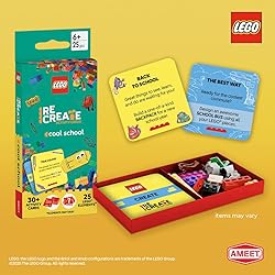 LEGO BOOKS: RECREATE ACTIVITY CARDS - The go anywhere, play any time, ultimate building experience for kids ages 6+ to enjoy solo, with family or friends CREATE, BOOST, AND ADD A TWIST! - With 3 different ways to play, this, pocket-sized set contains 30+ cards, 25 LEGO elements and provides multiple, fun building challenges THE ONLY LIMIT IS YOUR IMAGINATION - Each card contains a fun, back-to-school-themed challenge, such as making a theater prop for the school play, designing a festive decoration for a class party or constructing a calculator that will solve any mathematical problem. Can you build an adorable class pet, an awesome school bus or a mascot for the cheer team? PLAY SOLO, WITH FAMILY OR FRIENDS - Keep drawing out new cards and experimenting with the LEGO elements to find out what you'll be building next. GIFT IDEA FOR KIDS - LEGO BOOKS: ReCreate Activity Cards are the perfect birthday gift or anytime treat for girls and boys. Other themes available: Animals, Castle, Celebration, Cool School, Happy Birthday, LEGO City No Limits, LEGO NINJAGO Ninja Adventures, Magic, Nature, Ocean, Pets, Space, Tech