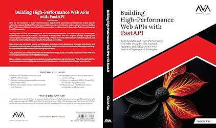 - Master FastAPI to Build Secure, High-performance Web APIs with Modern Python— from Fundamentals to Full-scale Applications. Book Description APIs are the backbone of today’s interconnected digital world, powering everything from mobile apps to enterprise systems. Building them to be fast, scalable, and secure is critical for modern software success. Building High-Performance Web APIs with FastAPI shows you how to achieve exactly that—using Python’s cutting-edge FastAPI framework. Starting with RESTful API fundamentals and FastAPI’s core principles, you will set up your development environment, install the framework, and explore its key features. You will progress through designing and validating data models with Pydantic, implementing authentication and authorization, handling file uploads, and integrating relational databases like SQLite, PostgreSQL, and MySQL. From there, you will master testing and debugging techniques, learn deployment strategies with Docker and Kubernetes, and scale your APIs with best practices for performance and security. Real-world projects and step-by-step examples make each concept easy to grasp and apply. Hence, whether you are a developer, architect, or engineer, Building High-Performance Web APIs with FastAPI is your roadmap to mastering high-performance API development—start building the APIs your users deserve. Table of Contents 1. Introduction to FastAPI and RESTful APIs 2. Setting Up the Development Environment 3. Installing FastAPI 4. Core Features of FastAPI 5. Dependency Injection 6. Request and Response Models with Pydantic 7. Authentication and Authorization 8. File Uploading 9. Connecting to Databases 10. Testing and Debugging 11. Deployment and Scalability 12. Managing Application Configuration 13. Building Practical Projects 14. Future of FastAPI 15. Appendices Index
